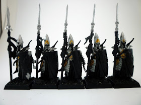 Thanks for the comment Kuffeh. I have a fairly "vanilla" or "traditional" color scheme with my highelves. Chainmail metalics, with a wash. Cloth is white, with a foundation of space wolf grey. The contrast color is turquois blue, which I love the look of. Lastly, red gems and gold as the secondary spots of color throughout. I recently bought a reaper paint 3 set of ocean blues, which I plan on using on the Lothern Seaguard sheilds, and IF it looks good, I might use it on my dragon princes too!